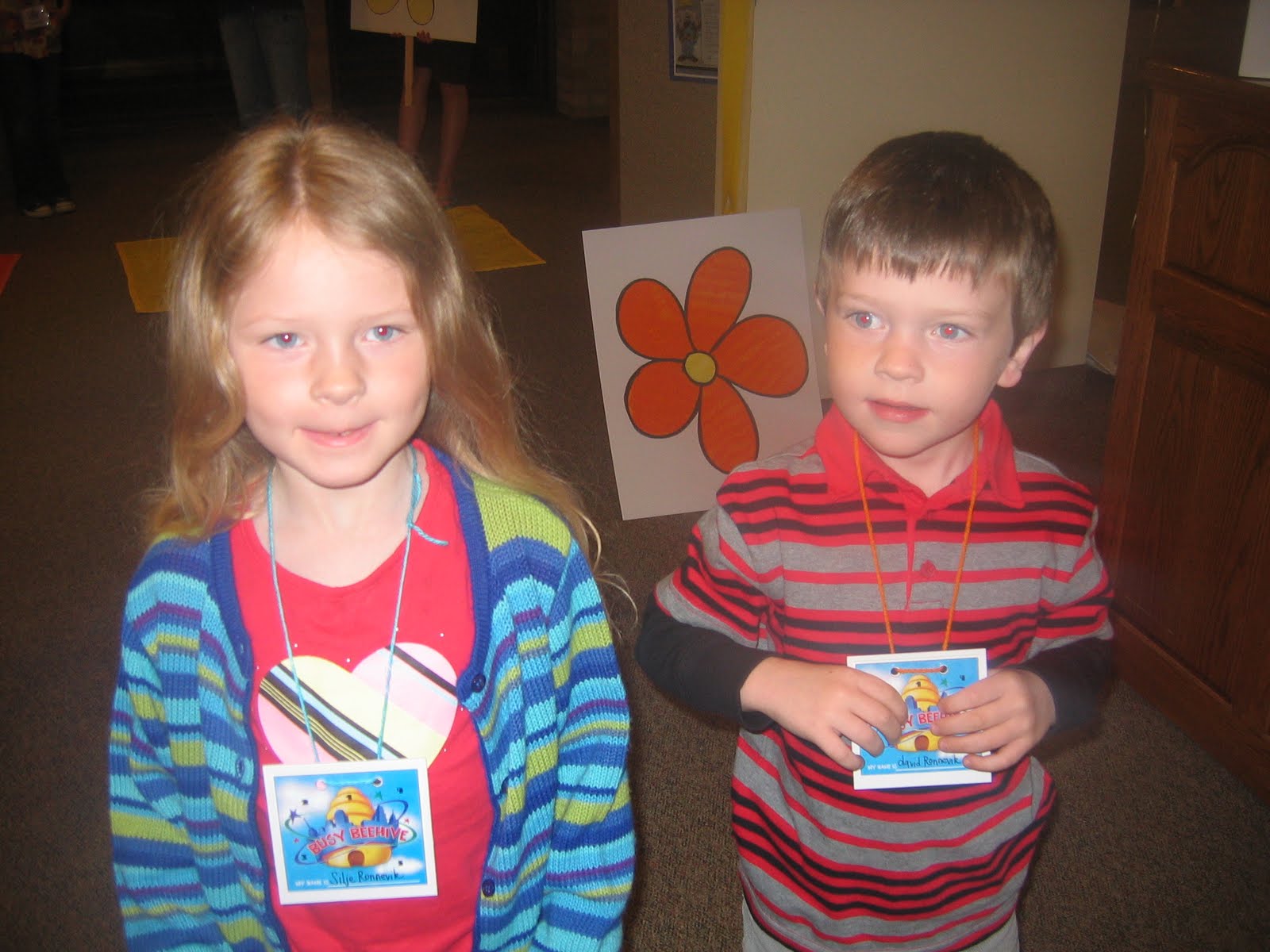 The kids finished up VBS today with their AWESOME program, and sadly…I left my camera at home. This picture was from the first day. We did get the c.d. of VBS music on it to take home, though, so if we’re lucky maybe the kids will re-enact it sometime.