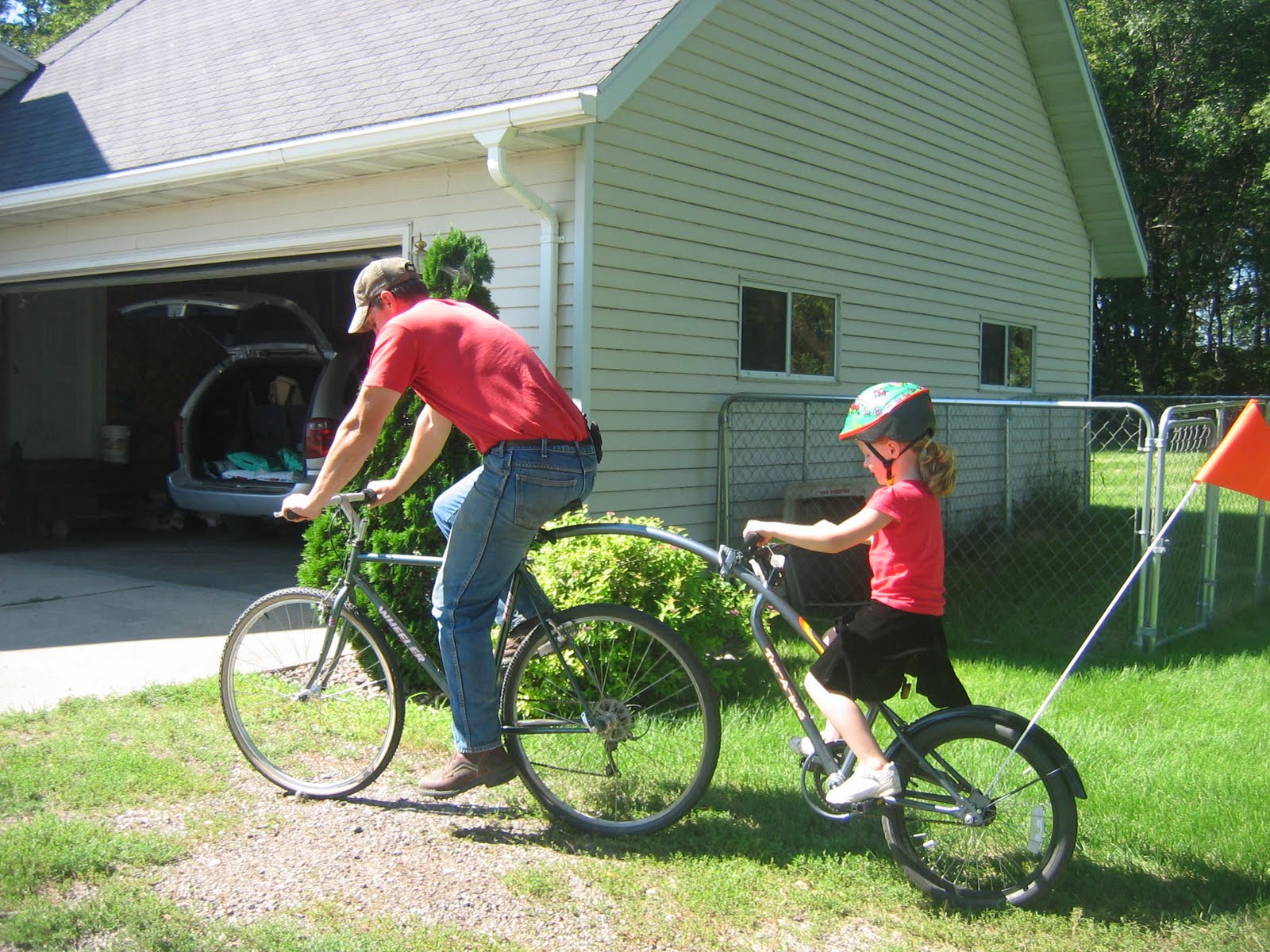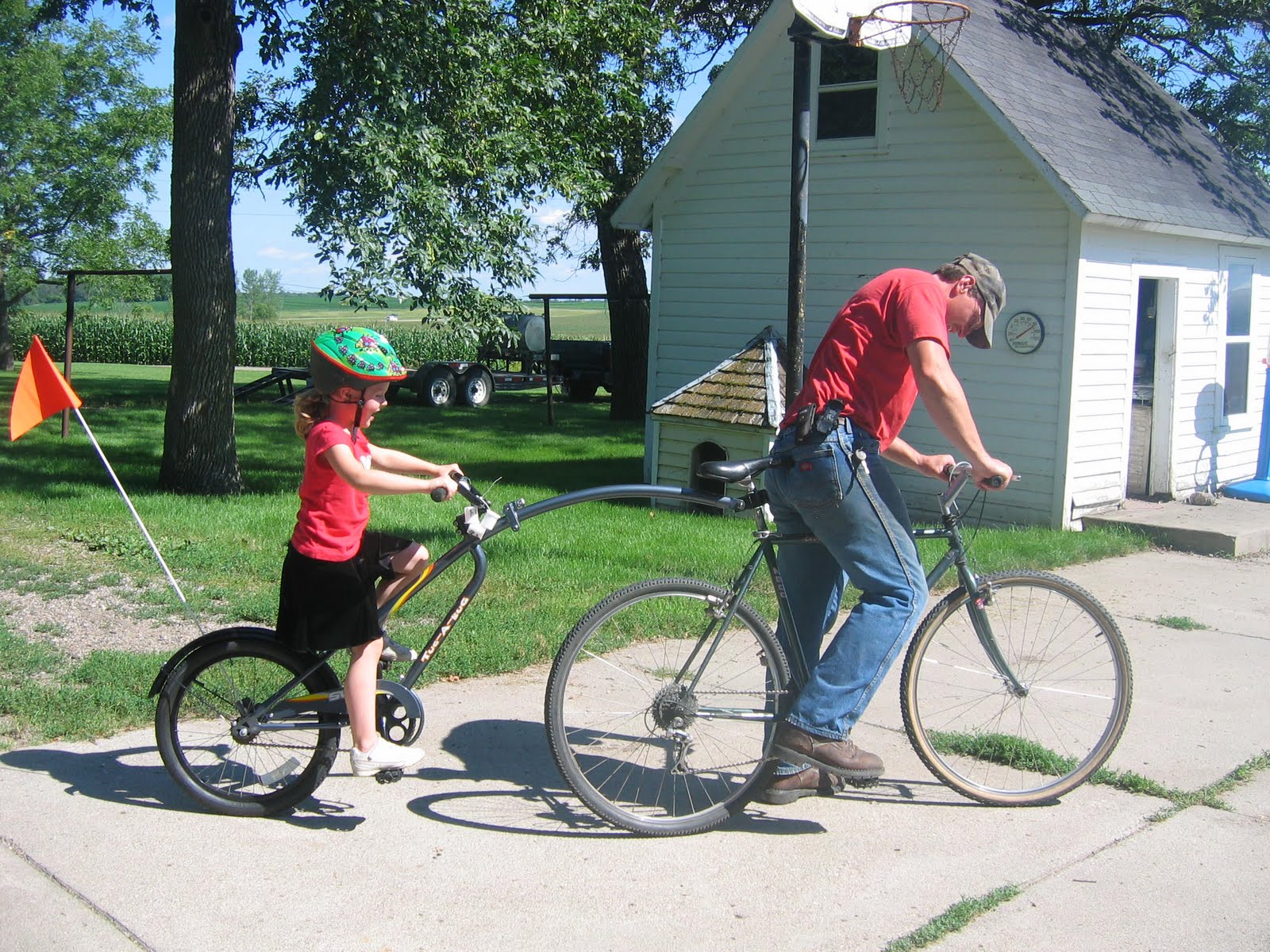 Take a look at that! It’s a little 3rd wheel with petals and handlebars that attaches to the back of Knut’s bike. She’ll get to go along with David and Daddy after all!