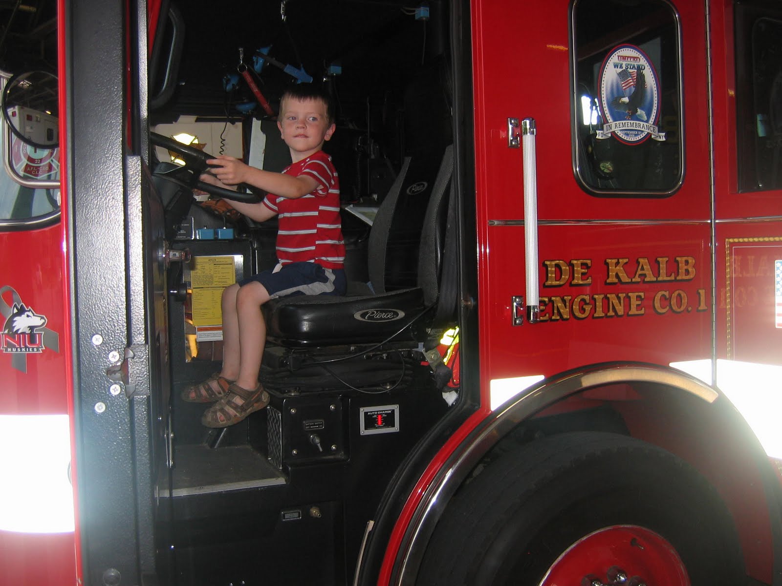 The first leg of our journey took us to the home of friends of Knut and I, a bit outside Chicago. The kids refer it as “Fireman Chris’ house.” Yes, our friend Chris does work for the fire department, but I believe he drives an ambulance. Still, he was more than willing to give the kids a tour of the fire engine.