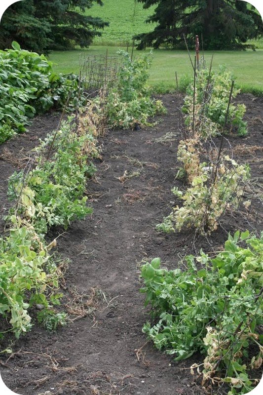 I’ll start with the bad news. Our peas are having a bad year. For some reason, only half of them came up, and we picked a few and halfway through our normal season, they are now all looking like this. There is no lack of rain lately, and I don’t see evidence of any bug taking over. Normally we eat what we like fresh and then freeze about an ice cream bucket full for winter. Last year we ate what we liked fresh and had 2 ice cream buckets and 1 full gallon Ziploc bag frozen for winter. This year we ate some fresh and have none left to freeze. We’re pretty bummed.