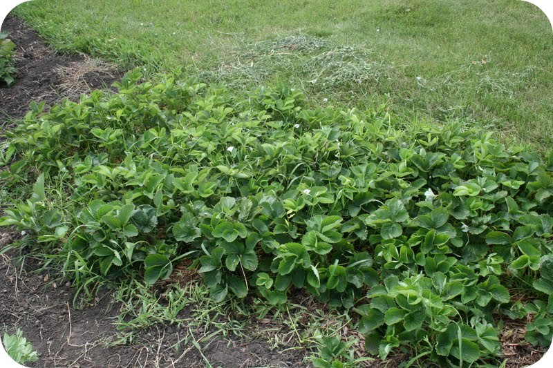 Here’s our strawberry patch that blew us away this year. It was so delightful! Each year I’ve been trying to figure out how to handle the weeds. Last year I tried dried grass and it kept blowing away. This year I tried wood chips and it worked amazingly well. I’ll be doing that again! I asked a friend of mine in the homeschool group who gets really good strawberries what she does. She said that each spring she moves them into rows, lays down landscape cloth over them and then covers them with wood chips. So this next Spring I plan to organize this patch into rows, and do the cloth and chips.