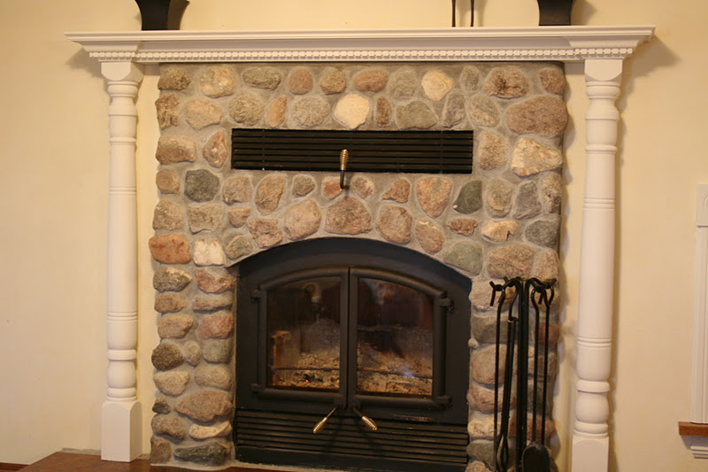 The next year, Knut picked out stones from various piles around our fields. Doing the stonework himself, these stones that were in our living room for many weeks were placed layer by layer up on the fireplace. He would only do one layer a day so that the mortar could set before the weight of the next layer was installed. It was a tediously slow process.