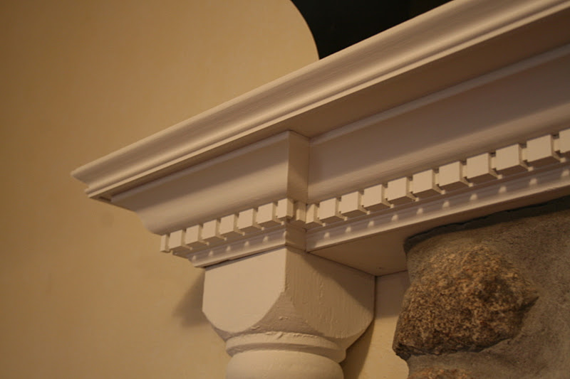 The molding for the wood box came from scraps his dad left in the summer kitchen (aka shed by the driveway) when his parents did a remodel when Knut was little. They were also kind of beat up so they got a paint job as well. The inspiration for the molding for the fireplace came from the molding found in the antique doors to the 3 season porch.