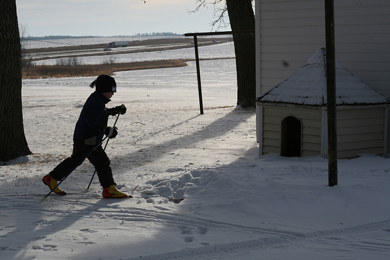 Just now as I write this, David is out for a quick after-breakfast-ski before his reading lesson will start. There’s not much snow in our yard, but he won’t let any of it go to waste while we have it. Elias is inside this time. David said he’ll give him another lesson later. For now he just wants to race fast for a few minutes.