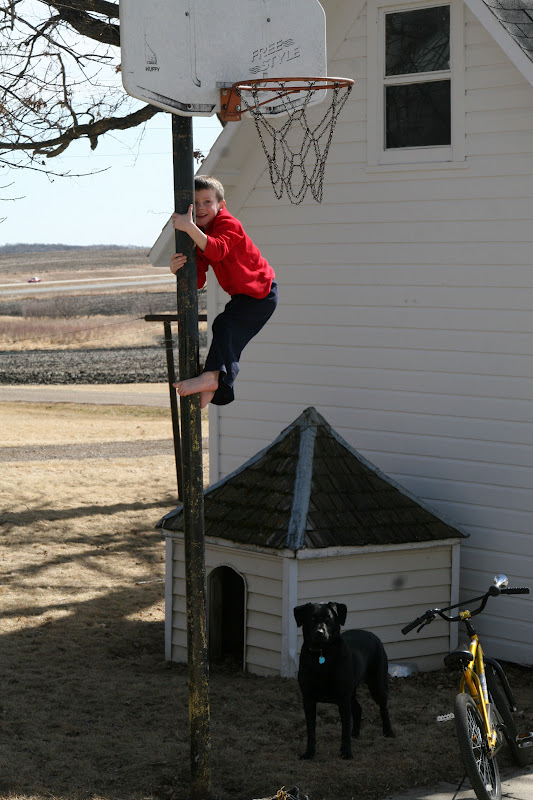 While Mama Lena looks on nervously, ready to attack the basketball stand should it let David down.