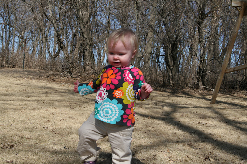 Solveig is discovering the thrill of walking on the uneven, unpredictable ground.