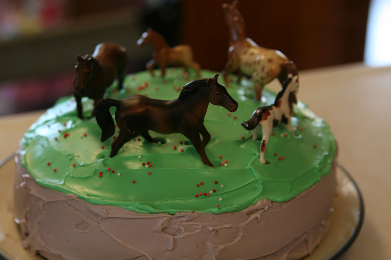 Silje had everything planned down to how the cake should go exactly. She told me exactly how the frosting had to go, and which horses were to be placed where, and exactly what color sprinkles had to be used. In fact, she was a little annoyed I didn’t just step aside and let her do the whole cake. I’m old fashioned in the way where I think one shouldn’t make their own birthday cake. I kept explaining this tradition to Silje.