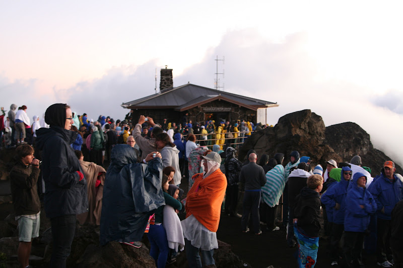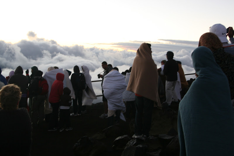 This was a REALLY early morning, and we put it near the end to help get us used to our regular time zone again. We woke up about 3am, and headed once again in the car up the tallest mountain in Maui (10,000 feet) to see the sunrise from above the clouds. It’s quite the thing to do, and the locals around here told us to dress very warmly as it gets very cold up there. We would smile at them and chuckle to ourselves (yeah right, cold!) Still, I packed the towels from our hotel to use as a blanket. I packed a thin wool sweater just for this event, and long jeans. Knut had a thin jacket and 1 long sleeve shirt along, so he felt all set as well.