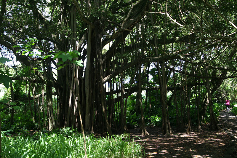 It was another early morning, as Knut and I drove all the way from the West coast of the island where we were staying to the East coast which is supposed to have more rain forests. Much of the Eastern part of the island is a nature preserve, and National forests, and there’s an extremely limited amount of hotels, places to eat, etc. because of those restrictions. The road to Hana, our destination, is not far mileage-wise, but it took us 3 hours to drive the whole way. The famous “road to Hana” boasts of nearly 200 hairpin turns with several 1 lane bridges and roads to the edge of cliffs…with no guard rails.