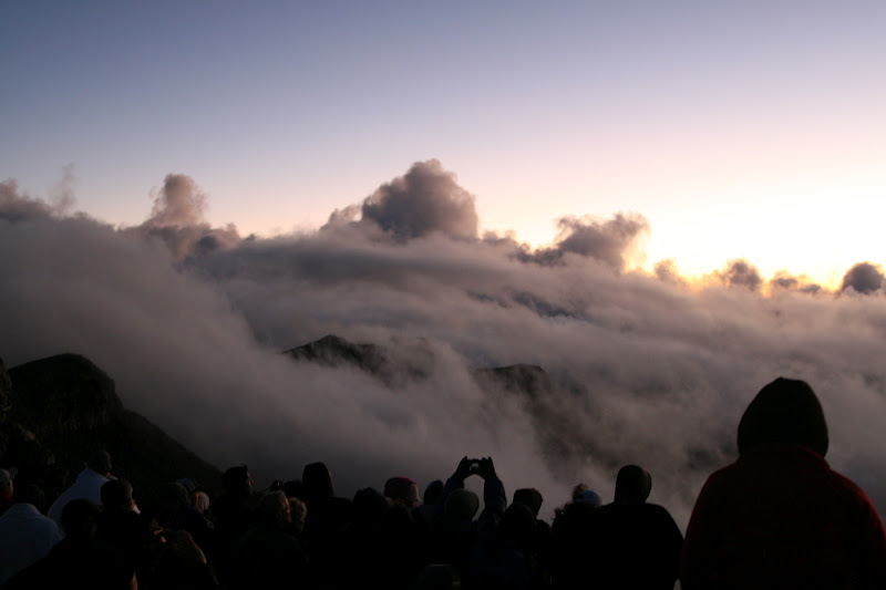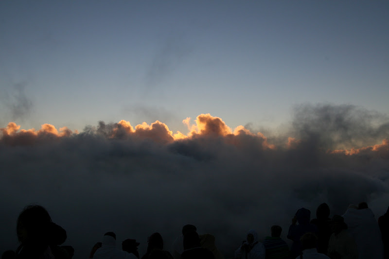Just as we were reaching the finale of the big show: the sun appearing, a huge fog covered the peak, and we saw no more but the inside of a cloud. I was a bit disappointed by that, but I was rewarded with the flip side of that on our trip back down the mountain: