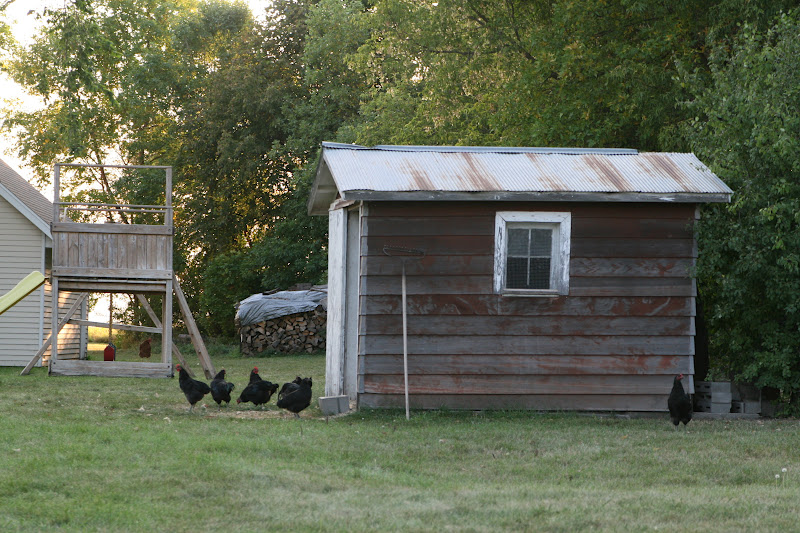 September 6, 2012 at 5:32 pmI think your black chickens may be Australorps since they look just like ours. They are SUPPOSED to be a friendly breed. Thankfully, we have not had issues with our roosters yet. Kelten keeps them in line, I guess. 🙂 I think you should play the pregnancy card with the chicken plucking… that’s my plan. 😉