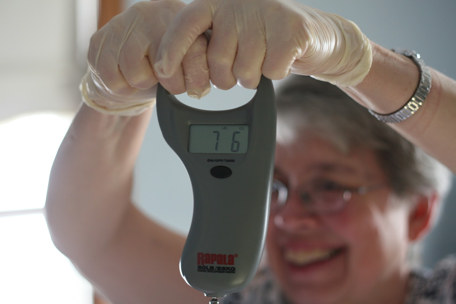 Around that time, one of B’s assistants arrived, and they went to work cleaning up the bathroom. Knut and Ingrid and I snuggled on the bed and we inspected her long fingers and cute toes. When everything was cleaned up, B and her assistant came in and asked if they could do the newborn check up now that we were all settled. So she got weighed, and her cord got cut much shorter so that it wouldn’t snag so easily. I guess I had never watched my other newborns get their check, or I wasn’t sure what all was being inspected, but B explained everything she was doing in great detail, and why she was checking each part of her. It was really interesting.