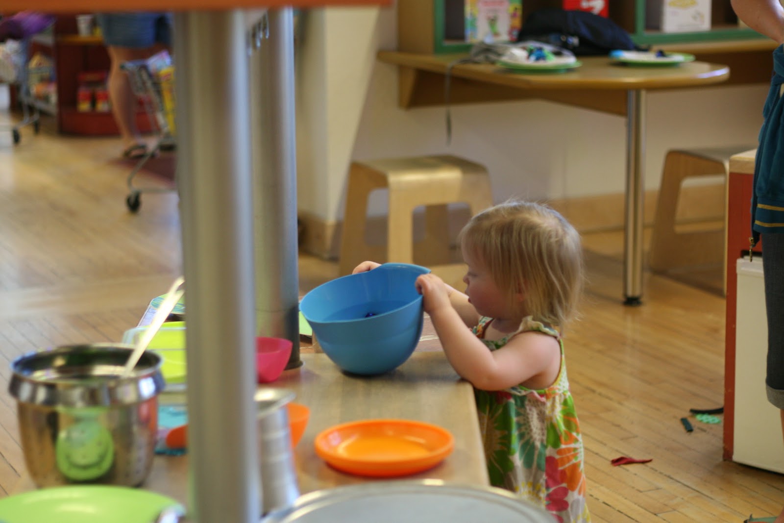 Solveig’s favorite activity was absolutely the state of the art play kitchen. Everything was just mini-sized and she was able to make some of her favorite meals. There was felt food there to create your own pizza, and even a “wood burning” pizza oven to bake it in. It was really neat in there!