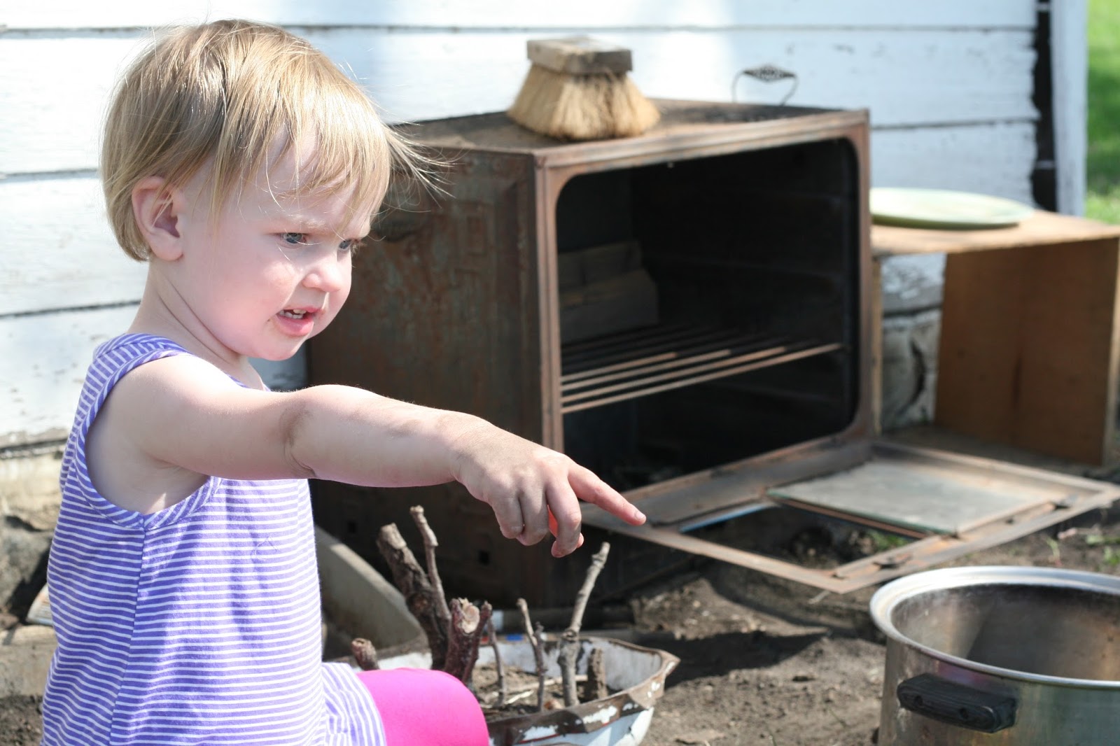Those who follow me on Instagram may have noticed our creation of a mudpie kitchen outdoors this last week.