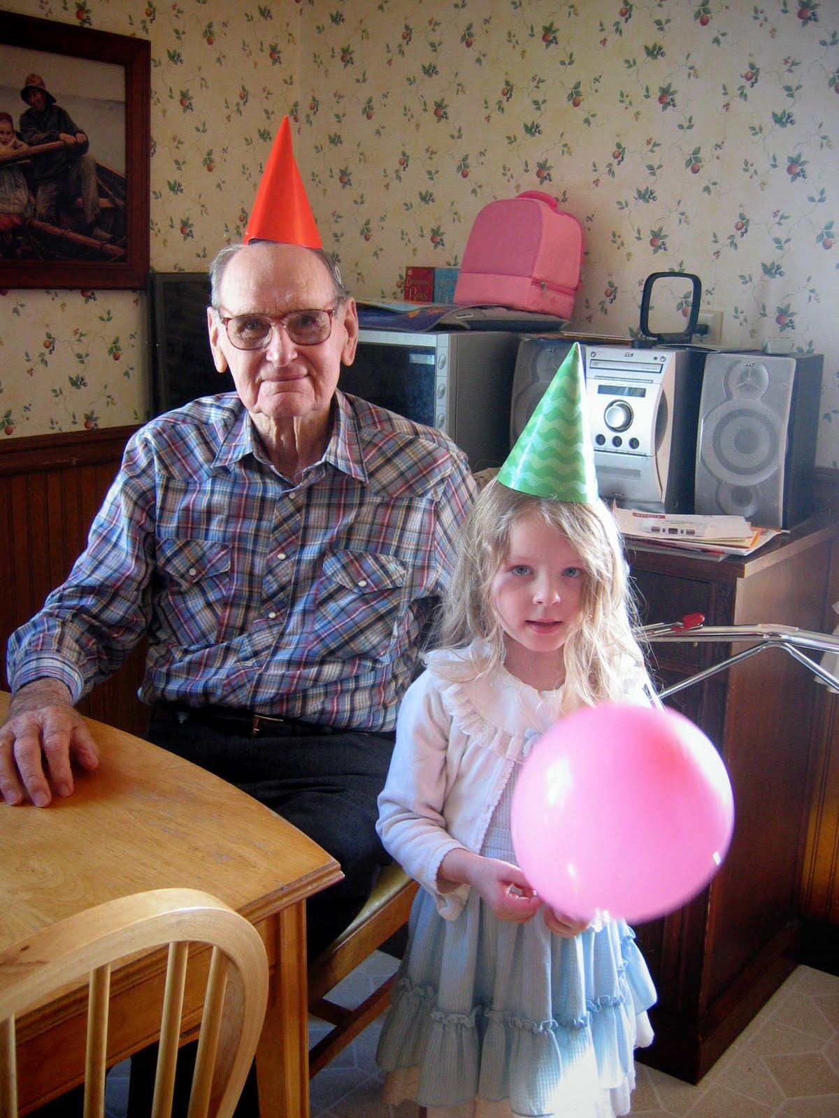 Here’s Silje with one of her great-grandpas…sporting the party hats!
