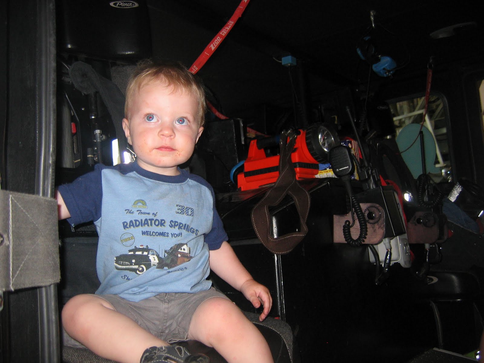 The first leg of our journey took us to the home of friends of Knut and I, a bit outside Chicago. The kids refer it as “Fireman Chris’ house.” Yes, our friend Chris does work for the fire department, but I believe he drives an ambulance. Still, he was more than willing to give the kids a tour of the fire engine.