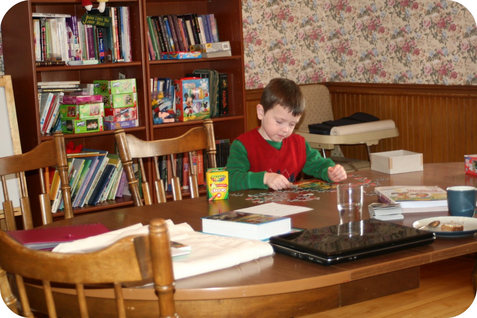 He also did some jigsaw puzzles, practiced writing his name (gasp! That’s a huge goal for this year!) and he completed a total of 13 pre-handwriting worksheets (dot-to-dots and mazes mostly). This from a kid who normally hates worksheets and I have to bribe to hold a crayon.