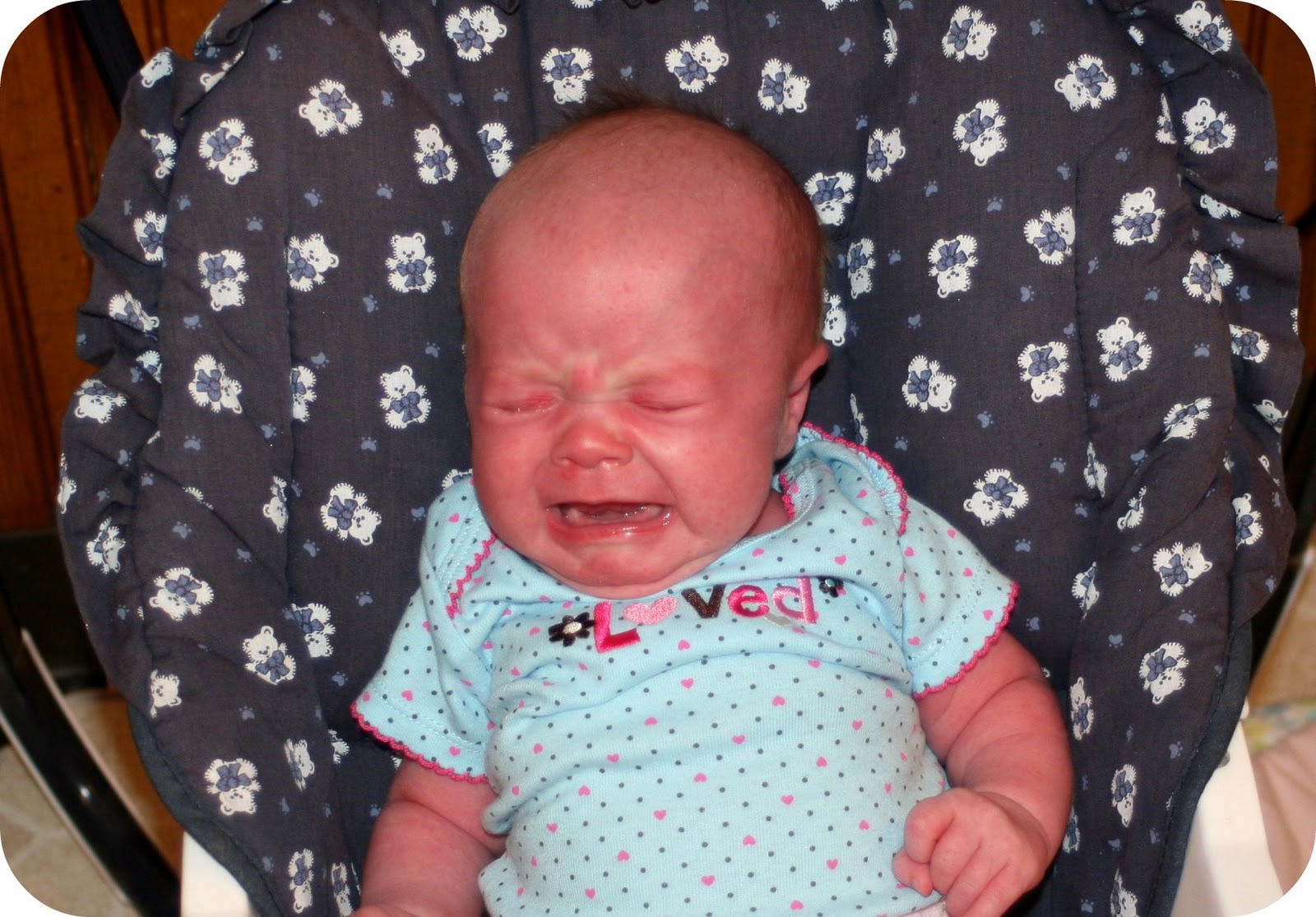 Though, let’s be honest. She knows what she wants. And what she doesn’t want. She doesn’t want to be wet or dirty but she doesn’t like getting changed. Diaper changes she’s starting to endure, but heaven help the person wanting to change her clothes. She wants to be held, or just touching either Mommy or Daddy all the time. She’s starting to get old enough that I’m starting to wean her off of sleeping in the wrap and start taking naps in the pack n play in the living room. She is not amused with this transition.