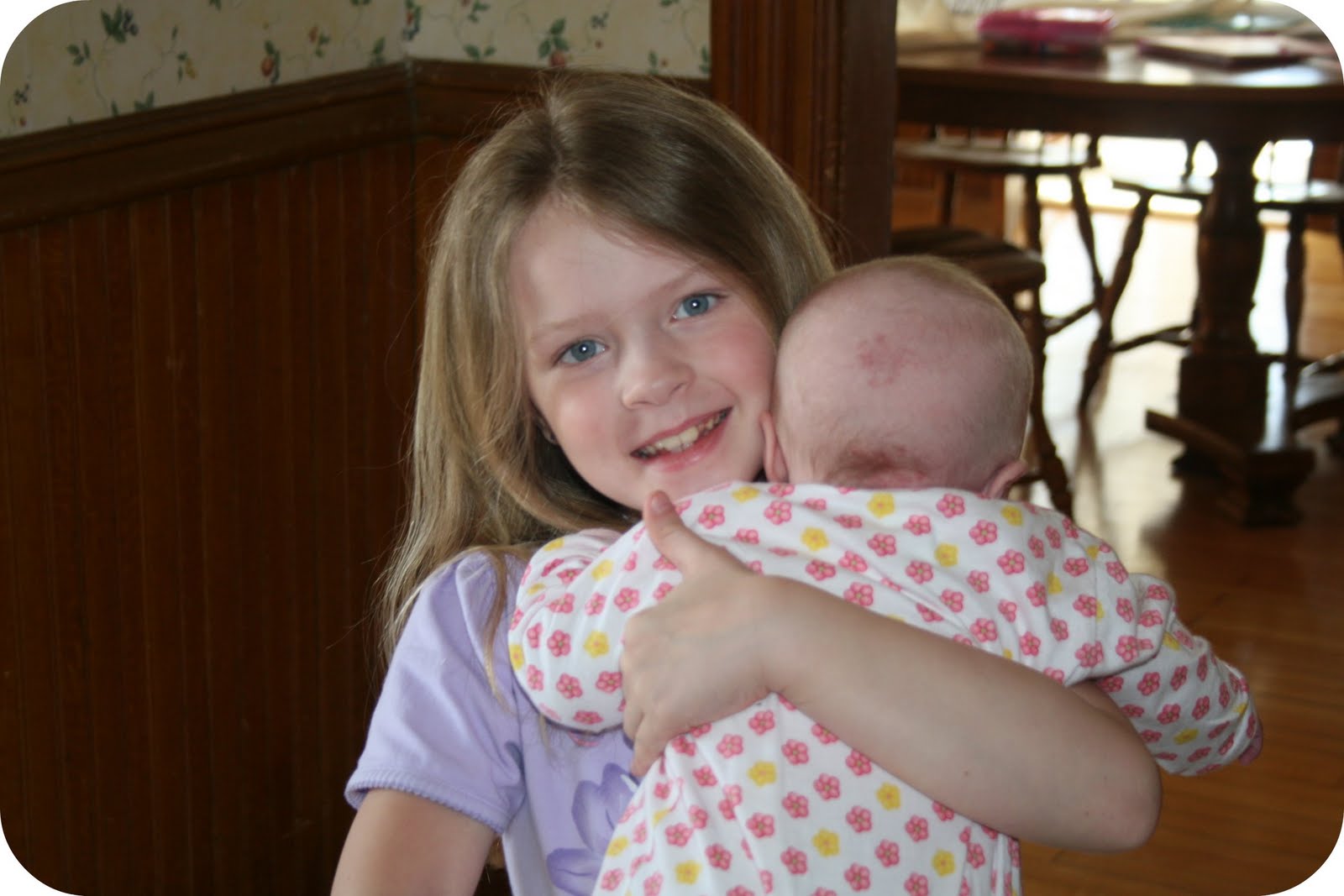 March 31, 2011 at 1:23 pmI loved it when my oldest could do that with the little ones, too, but she was even older. The only rule we had was no walking down the steps in socks! Too slippery! Your girls are beautiful!