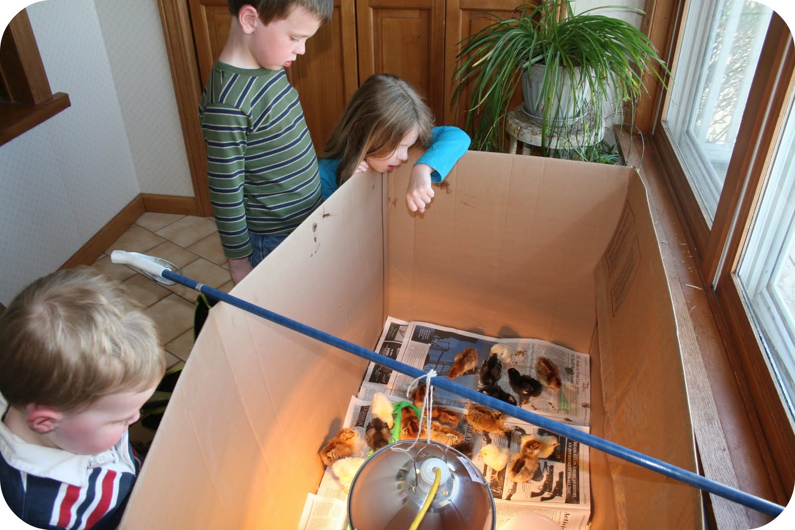 Right now they are in a big box in our front entry way. I’m not sure how long they’ll be in the house before we move them into the garage. We thought for the first little bit, it would be easier to keep an eye on them when they’re close by. Plus…