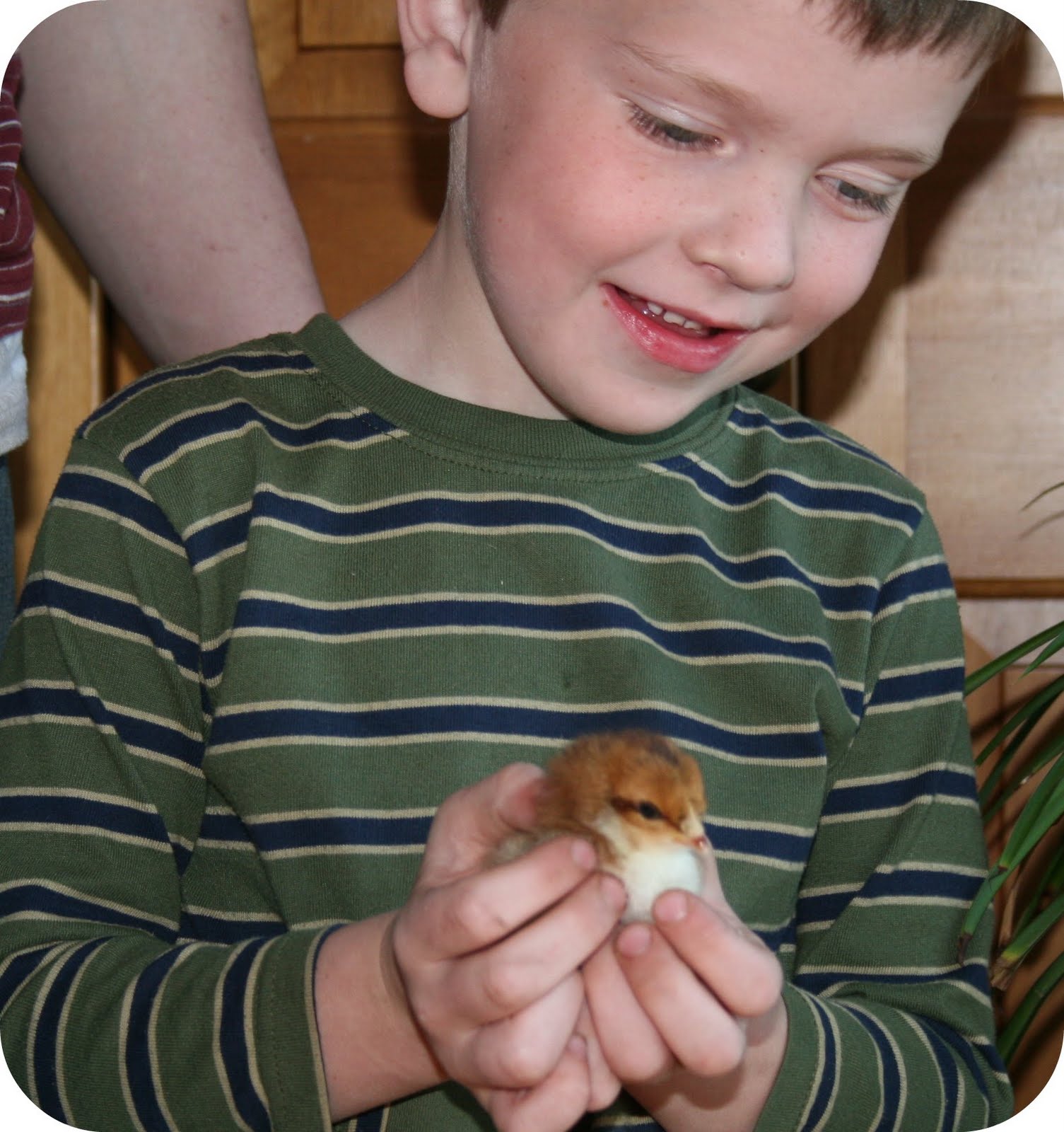 We were told by several people to be sure to have the kids wash their hands after handling them. That ended up being so many handwashes as the kids would play with them, then want to do something else, then go back, etc. We want them to be handled often as chicks so that the kids and the chicks know how to handle each other. So I think next time I’m in town I’ll get a little hand sanitizer pump container and have the kids “pump in” and “pump out” as they play with the little chicks…who should not stay little for long!