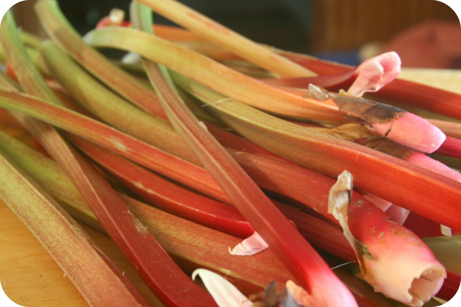 It’s rhubarb season. I tried to make a dent in rhubarb lane across the road from us, but even after picking all of this, you can’t even tell I was there. I only have 3 jars of rhubarb jelly left. We’re on our last jar of strawberry jam (which causes me to breathe fast when I think of it.) Strawberry is my favorite. We still have 2 jars of strawberry-rhubarb jam, and 1 jar of blueberry-rhubarb jam. If you saw how much we normally stock, you’d recognize this as a huge shortage in our house. I didn’t put away any jams or jellies last summer because I just didn’t feel up to it when I was pregnant with Solveig. This year I need to catch up. Since the strawberries aren’t ready yet, I’m going to start with some rhubarb jelly. I think I’ll prepare the juice tomorrow and turn the rhubarb juice into jelly tomorrow. If I have a free hand, I’ll post how to make it. I’m not promising, though.