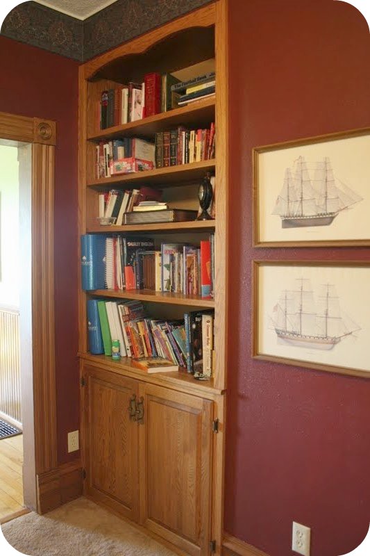 The den now has one built in bookshelf with a cabinet underneath. The bottom shelf has Silje’s school books from last year as she is now allowed to read them whenever she likes. The next shelf up has all of her 2nd grade books that she is not allowed to read until she is assigned them. As soon as we finish a book in school, she’s aloud to read it during her leisure time…which she does all. the. time.