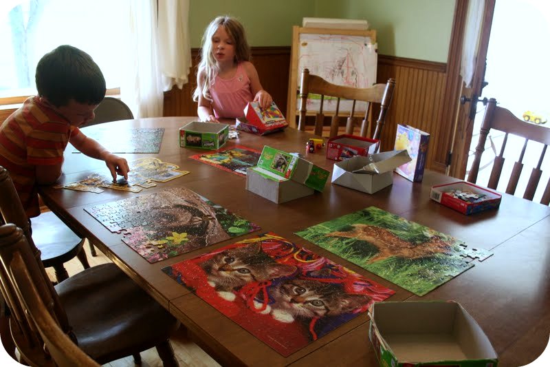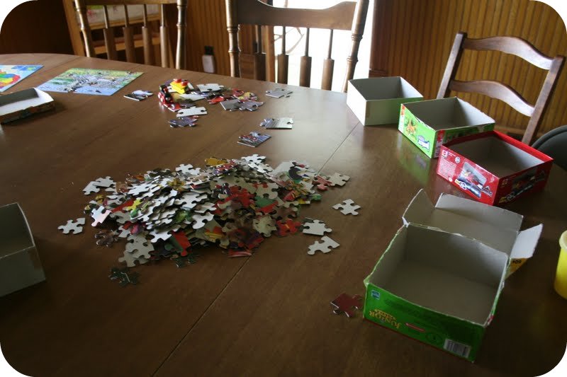 August 25, 2011 at 7:39 pmWhat fun to have all those puzzles to put together. I noticed when my kids were little that the most fun was when we did clean up jobs together. It kept them on track and not fighting and I enjoyed it. Miss you guys!