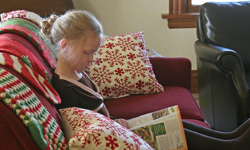 She helped me with the Christmas decorating, and paused here for a moment to read her Highlight’s magazine. I remember when she first got one the bus for kindergarten. I felt like I was losing my time with her and it was so good to start homeschooling her a year later. However, the feeling like she’s growing up so beyond me hasn’t left.