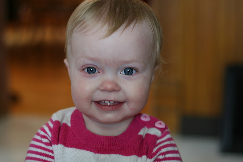 But she completely wins my heart about every moment of every day. Earlier this week she woke up (after a full night sleep! Yeah!) around 6am (not-so-much yeah!) and so I brought her back to our bed in hopes that she would coo quietly as I just rested my eyes for a few more minutes. She was so hyper, though, and just crawled between Knut and I giving us each big slobbery kisses.