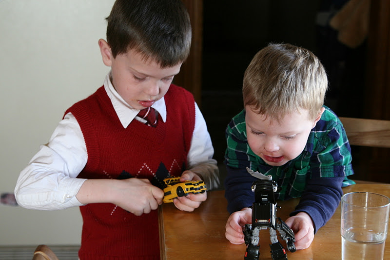 I’m so blessed by David who has been just a gem lately, especially with Elias. (Not only that, but he just begs to wear a tie every Sunday. We give in sometimes. He doesn’t have a lot of shirts that go well with ties.) Anyway, he’s been playing with Elias all the time and has been so patient with him. It’s nice when the fighting is at a lull and the play time is long.