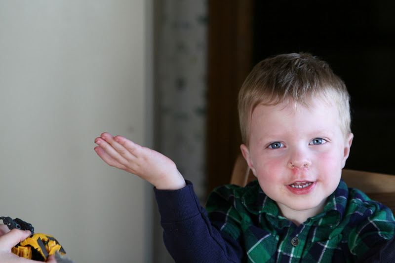 He’s had a bit of a cold but his whining has gone WAAAAAYYYY down this last week. I’ve been trying really hard to get down eye to eye with him. It’s a bit of a leg workout, but I’m finding that his whining comes to a halt when I do this, and I think he was just worried that we weren’t hearing him (even though we talked back to him always, and answered him always.) It’s like when I get down to his level, he feels like we heard him wholeheartedly, and then he does what we say (even if it’s the opposite of what he wants) without any fuss.