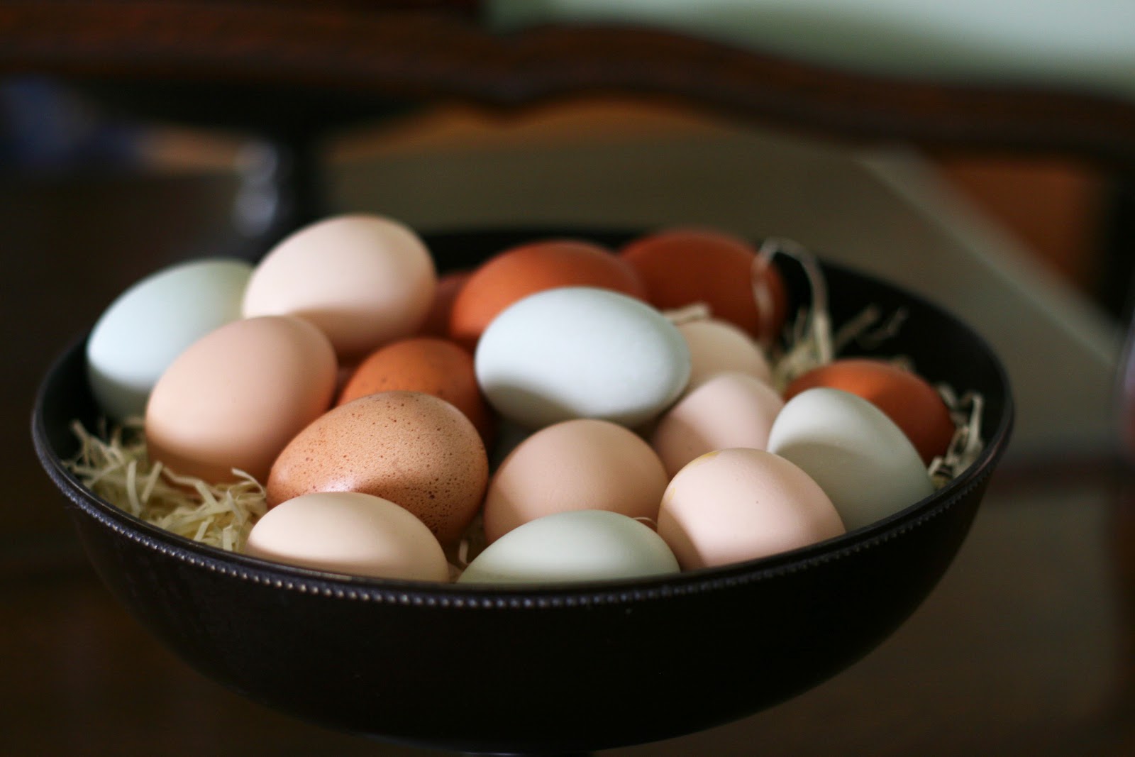 Our hens have been laying in full force lately. We’re averaging almost 12 eggs a day now, with a new record of 15 eggs in one day. I’ve been trying to blow out about 2 dozen a week for Easter decoration. My freezer is filling up with egg bakes. (I use those blue baby bulb things that is normally used for other things. 😉 Well, this particular bulb thing has the only purpose of blowing out eggs. It beats the old days of blowing with your mouth and takes only a few moments.) I love these colored eggs. Love, love, love.