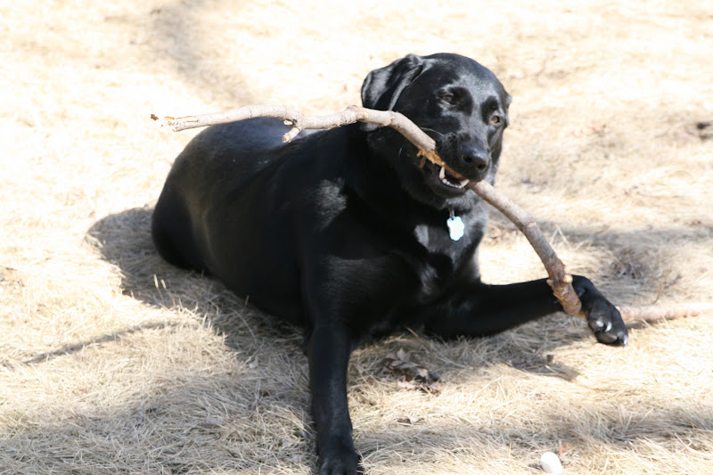Lena has found no shortage of sticks fallen in our yard.