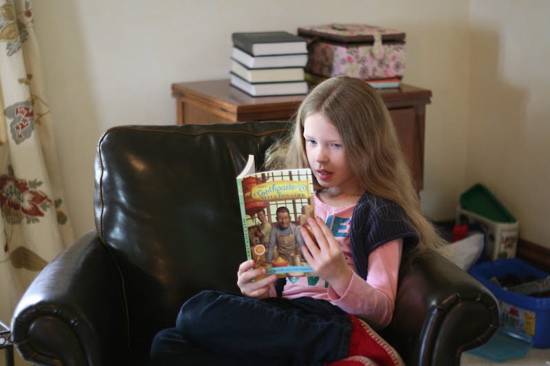 Silje is on her last reader of the year “Toothpaste Millionaire.” So far she’s liking it.