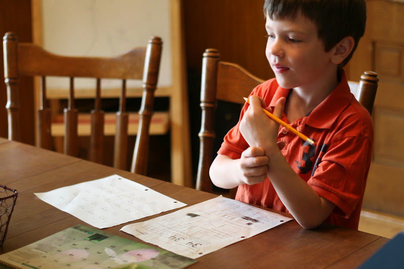 David is improving, and learning the tough lesson that school needs to get done when he’d rather do something else. He spends a significant amount of time each day trying to tell me that he’d rather do something else. It’s starting to sink in that he can either spend the day arguing and being punished, then doing school, doing chores, and have no time left to play. Or he can just do his jobs in a few hours and have the whole day to play. He doesn’t like the “everyday” aspect of school, and the novelty is certainly gone.