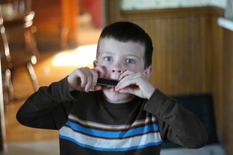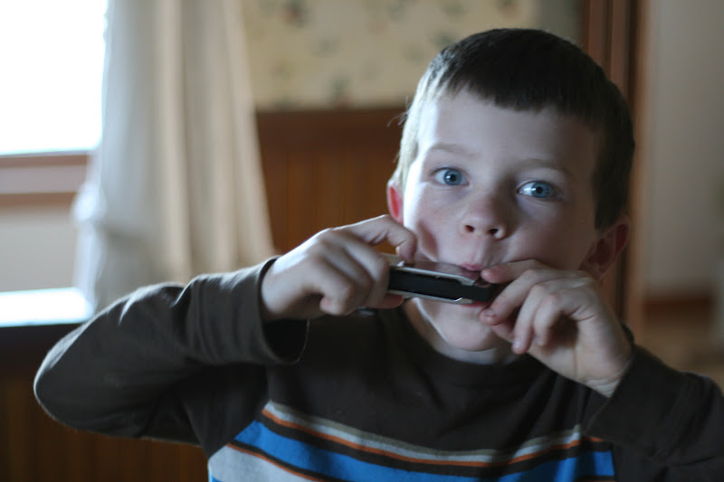 I was hoping to get the smile in his eyes when he’s playing captured on the camera, but he gets so nervous when he sees the camera, that he more looks like deer in the headlights than his normal self. Still, he wanted to show you all his harmonica, so he said it was okay if I took some pictures of him playing.
