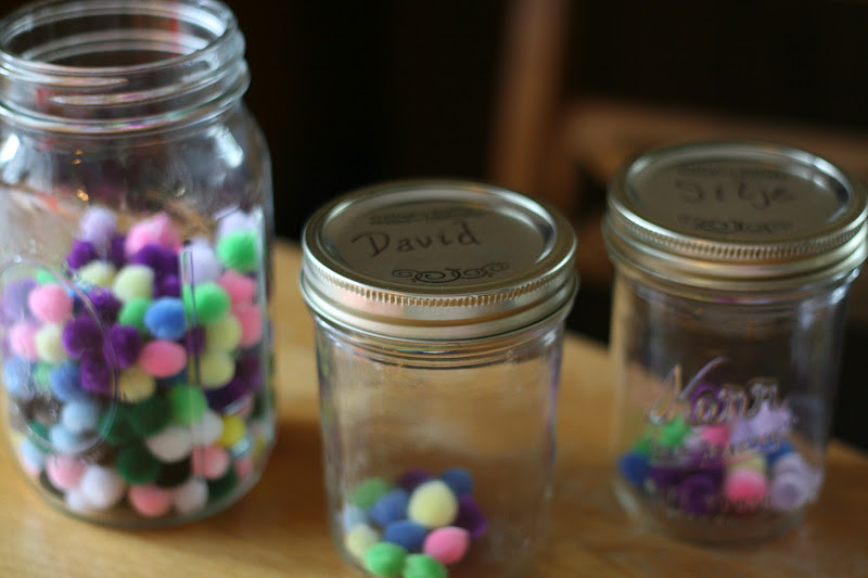 The first day it was tough for them to learn that they only had time to earn 7-8 balls. They were a bit upset they didn’t even get any t.v. that day. However, family movie nights don’t cost any balls. Those are just family dates. There are other rules, that we’re figuring out as we go. I’m hoping by this fall we’ll have a good system worked out. For instance, we have a rule that puffs are for good attitudes only. That rule was written out from the beginning. If they start whining and complaining, it’s no longer serving the family and the job stays, but the puffs go. This happened when David started cleaning out the van. When he realized that the job took longer than 5 minutes, he stomped his foot and said he didn’t want to do it anymore. I gave him one big encouragement that I thought he’d do a great job, and reminded him he had to have a good attitude. When his attitude got worse, and he was dragging his feet and saying how terrible of a job it was, I made him finish the job, but gave him no puffy balls for reward. He used up his reward by whining and complaining. He was not happy, but obediently finished. He finished with such a good attitude that I gave him 1 ball back.