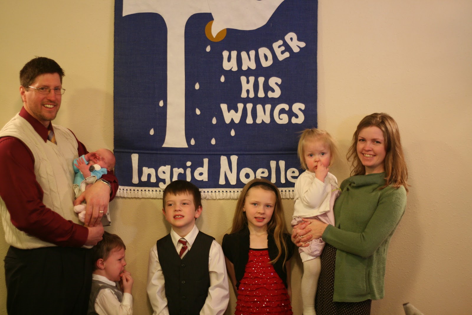 Yesterday was Ingrid’s baptism. Yep, this is about as good as a family picture gets these days. It’s way better than what I’d expect because we didn’t prep the kids at all for this picture. When you yank the kids away from their friends at church and say “stand here and smile” while 3 people with cameras shoot multiple times, well…this is what you get.