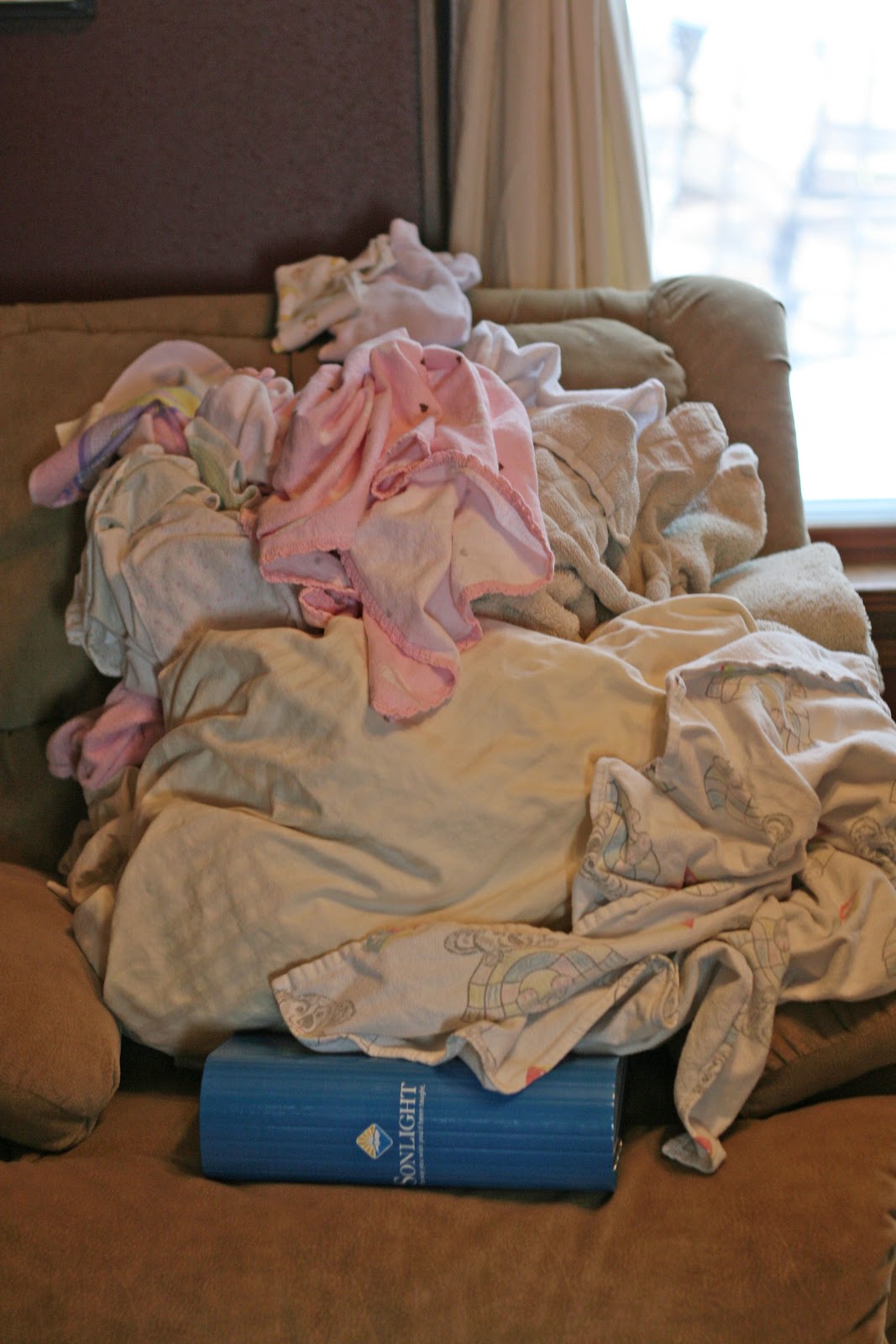 There are diapers to be folded because I’ve finally gotten my baby into cloth and out of ‘sposies. (Well, during the day at least.)