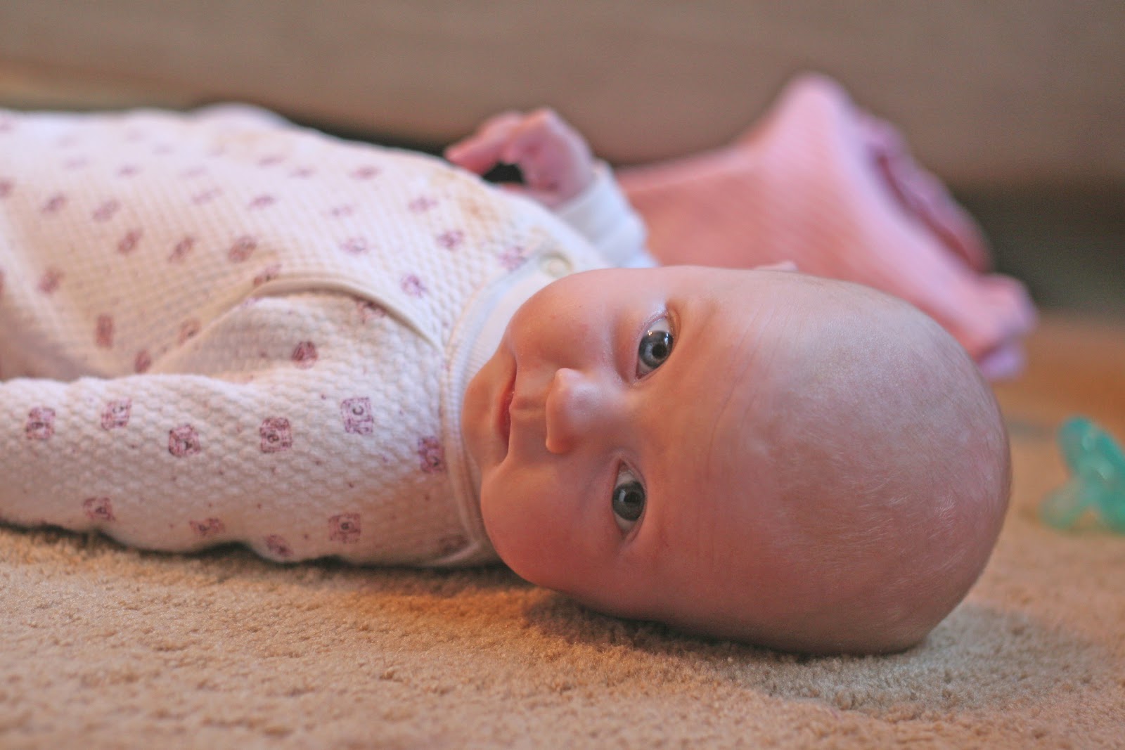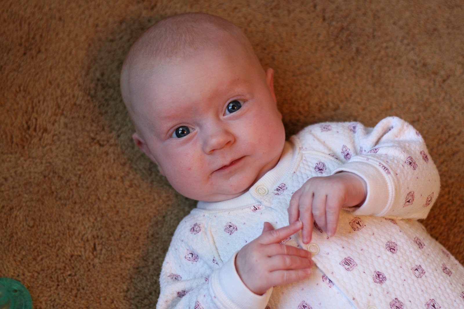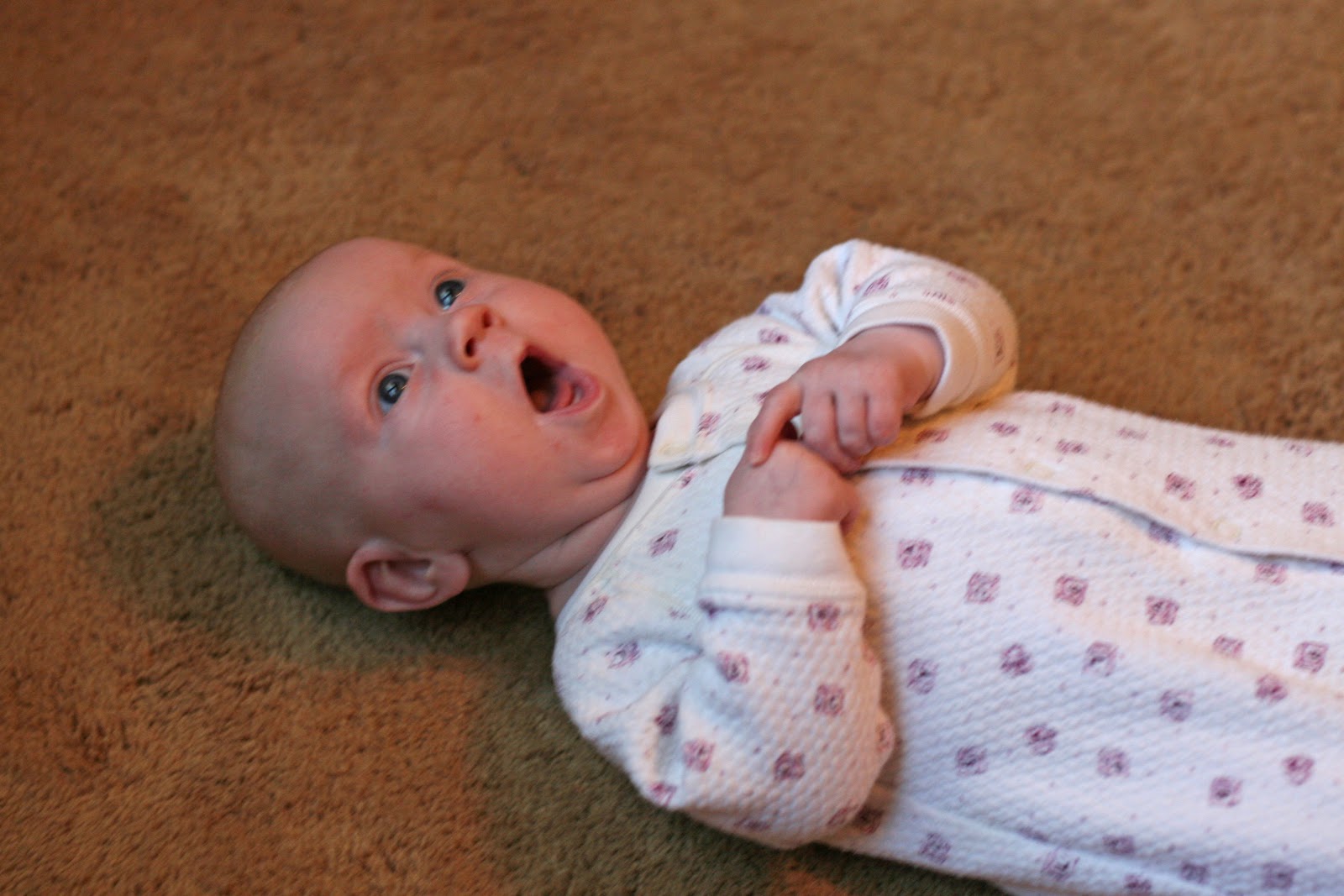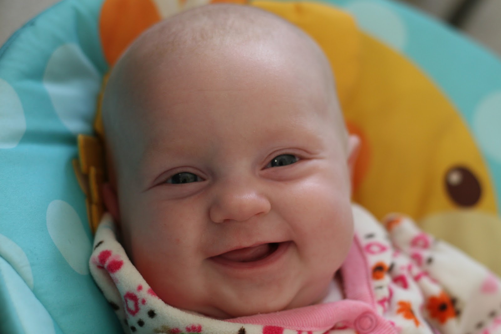 She’s “talking” tons too. She coos at me in almost every waking hour. Oh my, she’s going to be a chatty ones.