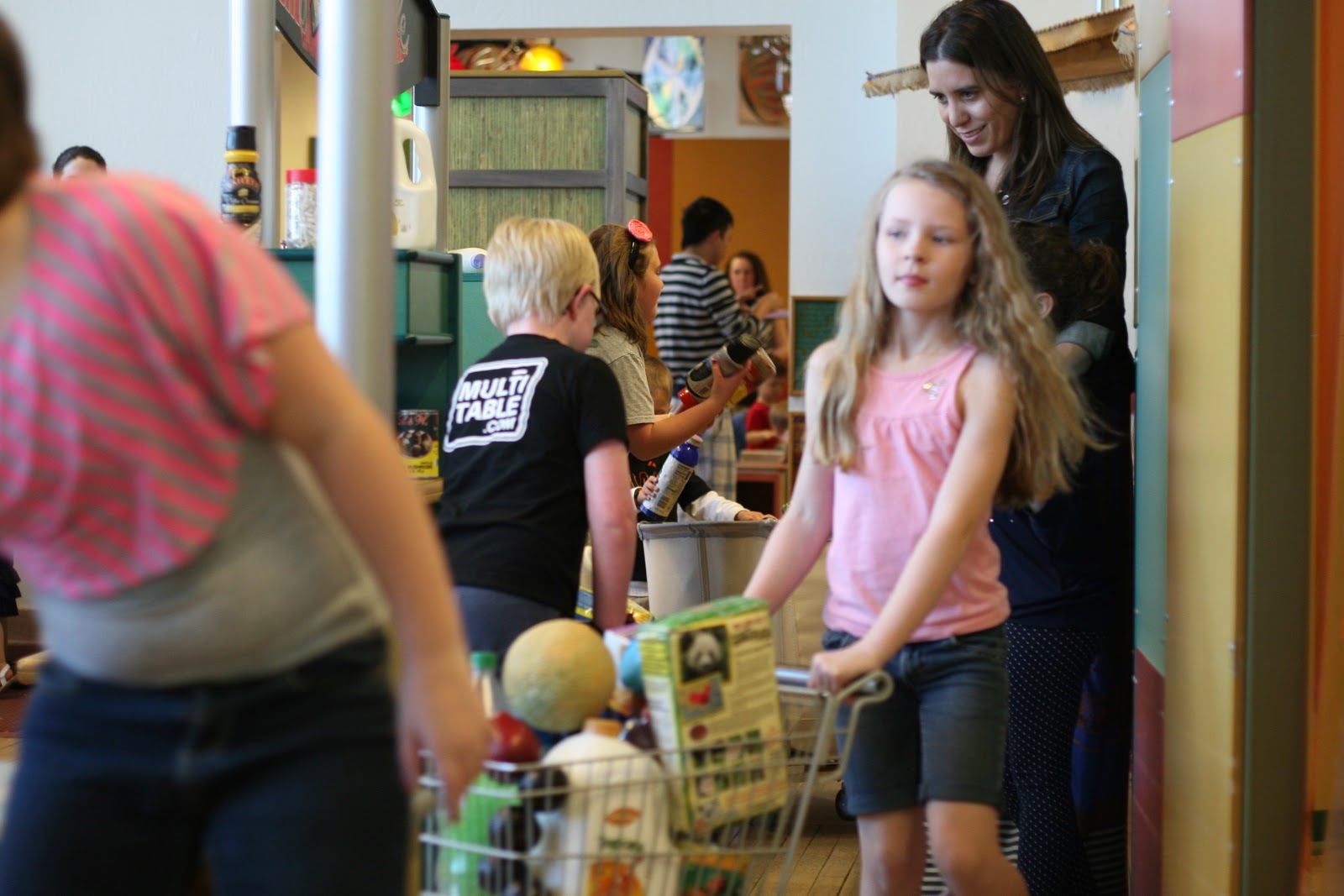 I was really surprised that Silje didn’t get into the art room more than she did. They had this rocket with thousands of layers of paint on it. The kids got to take their own bucket of blue paint and paint over it as much as they wanted. Even though the museum is for kids ages 1-10, I felt like there wasn’t enough there that interested Silje who is turning 9 this summer. There were some cool things, but the first little bit, I think she felt it was a baby place. I think it is a bit more pre-school centered in it’s opportunities.