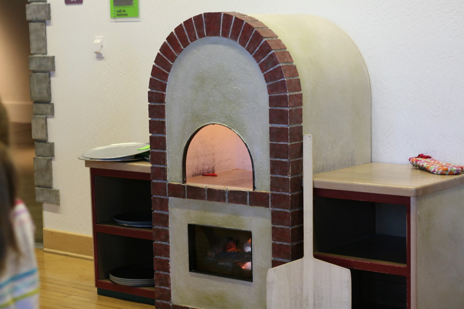 Solveig’s favorite activity was absolutely the state of the art play kitchen. Everything was just mini-sized and she was able to make some of her favorite meals. There was felt food there to create your own pizza, and even a “wood burning” pizza oven to bake it in. It was really neat in there!