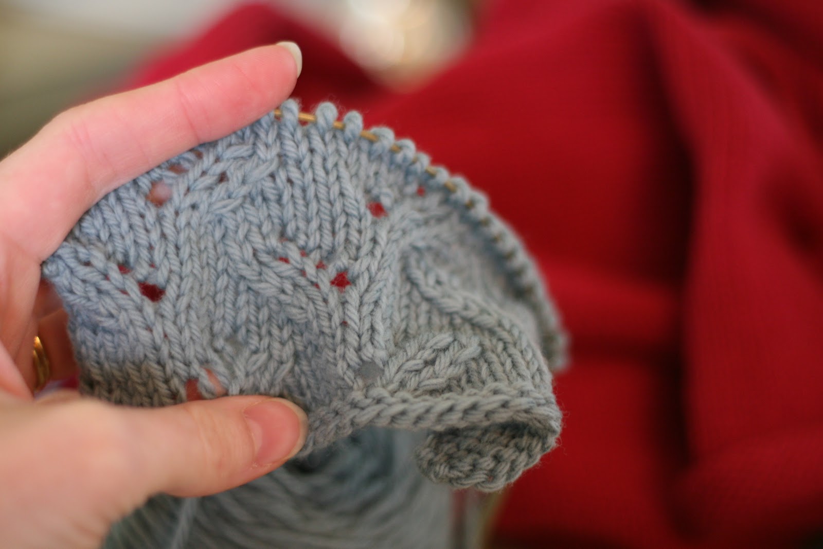 I’m currently swatching out a few projects. By far my favorite is this bird’s egg one. I’m planning on using this blue swatch to reach one of my 2013 goals of writing out an entire knitting pattern (all sizes and everything) before casting on the project…just from a swatch. The class I’ve been taking on Craftsy has helped me bunches with projects I’ve had in the works. I want to attempt one using the method I’m learning from beginning to end. I’m hoping to learn a lot by forcing myself to do it this way once. It will force me to finish the class too.