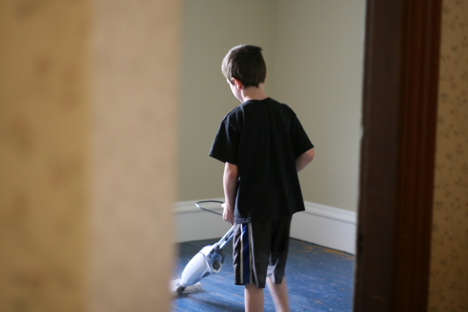 It has been constant mess upstairs in our house for quite some time! David wanted to be involved in all of it, and helped wet mop, and then steam the floor before all of the furniture was ready to be moved in.