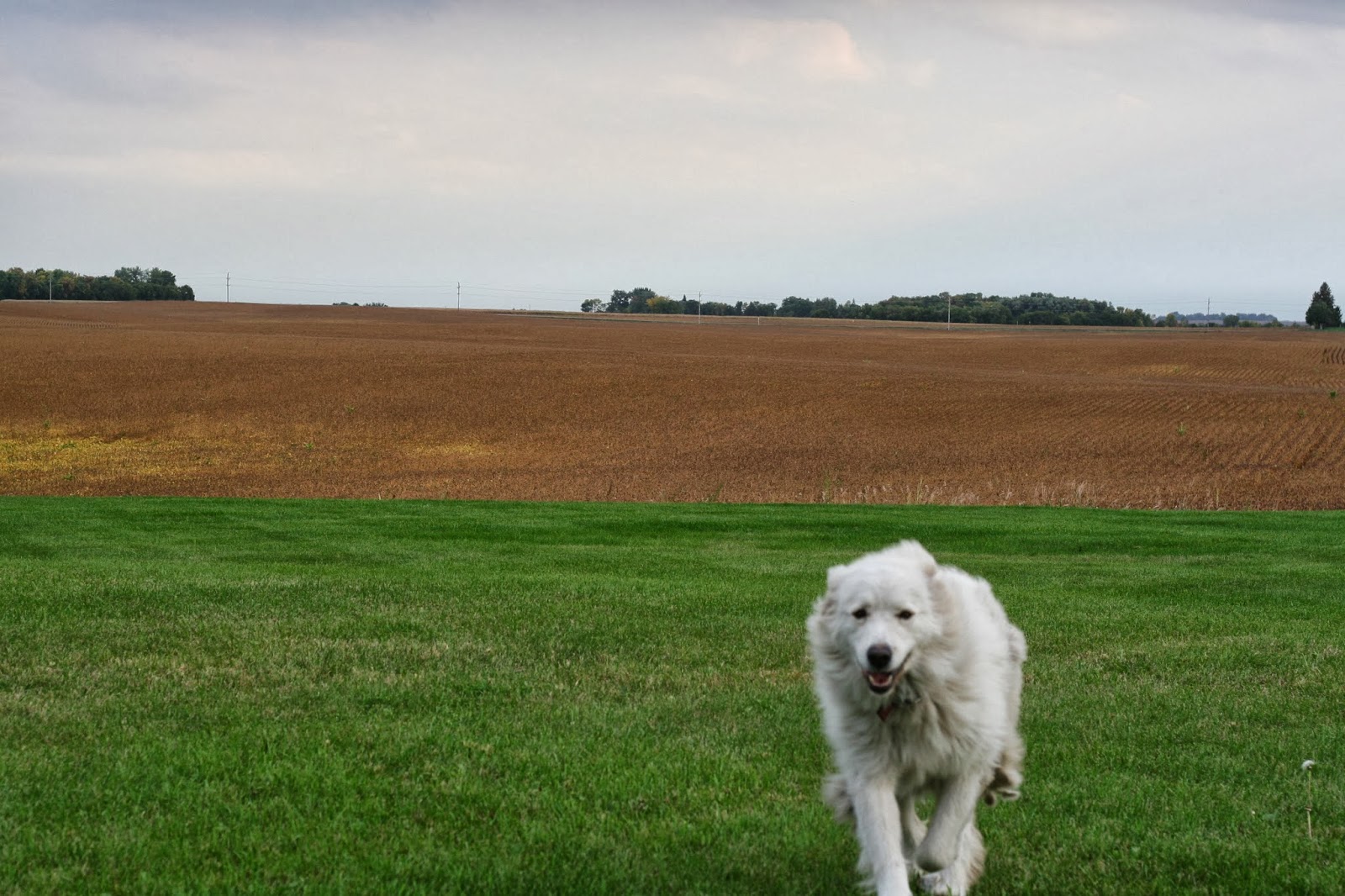 I was worried that she would be in the way of harvest, or slow up the semis. It’s been just the opposite. It’s almost like she senses the importance, and is determined to lend a hand…or paw. She doesn’t stray far from the house when harvest is running. She feels the need to keep an eye on us during the ruckus.