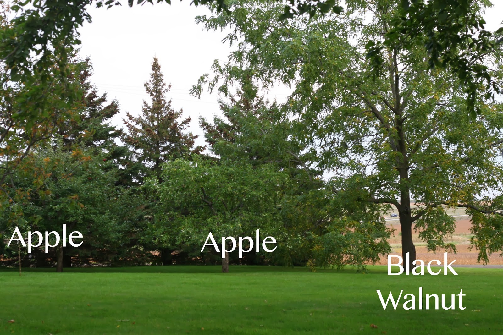 Well, it turns out, that happens often when you plant fruit trees by a black walnut tree. The black walnut tree has always been there, and the apple orchard was always there. In the gardening world these 2 types of trees are not very friendly with each other. While we know the apple trees that are there now will have a shorter lifespan because of this, we’re just going to leave them be, and then if we want to plant more fruit trees, we’ll look to anther area of the property: far away from the black walnut.