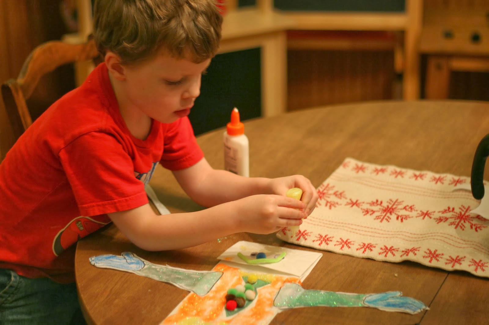So we made paper puppets for the girls’ new puppet theater. Elias really got into it. He is very artistic and takes great pains to make things just right. It was really fun to see that come out.