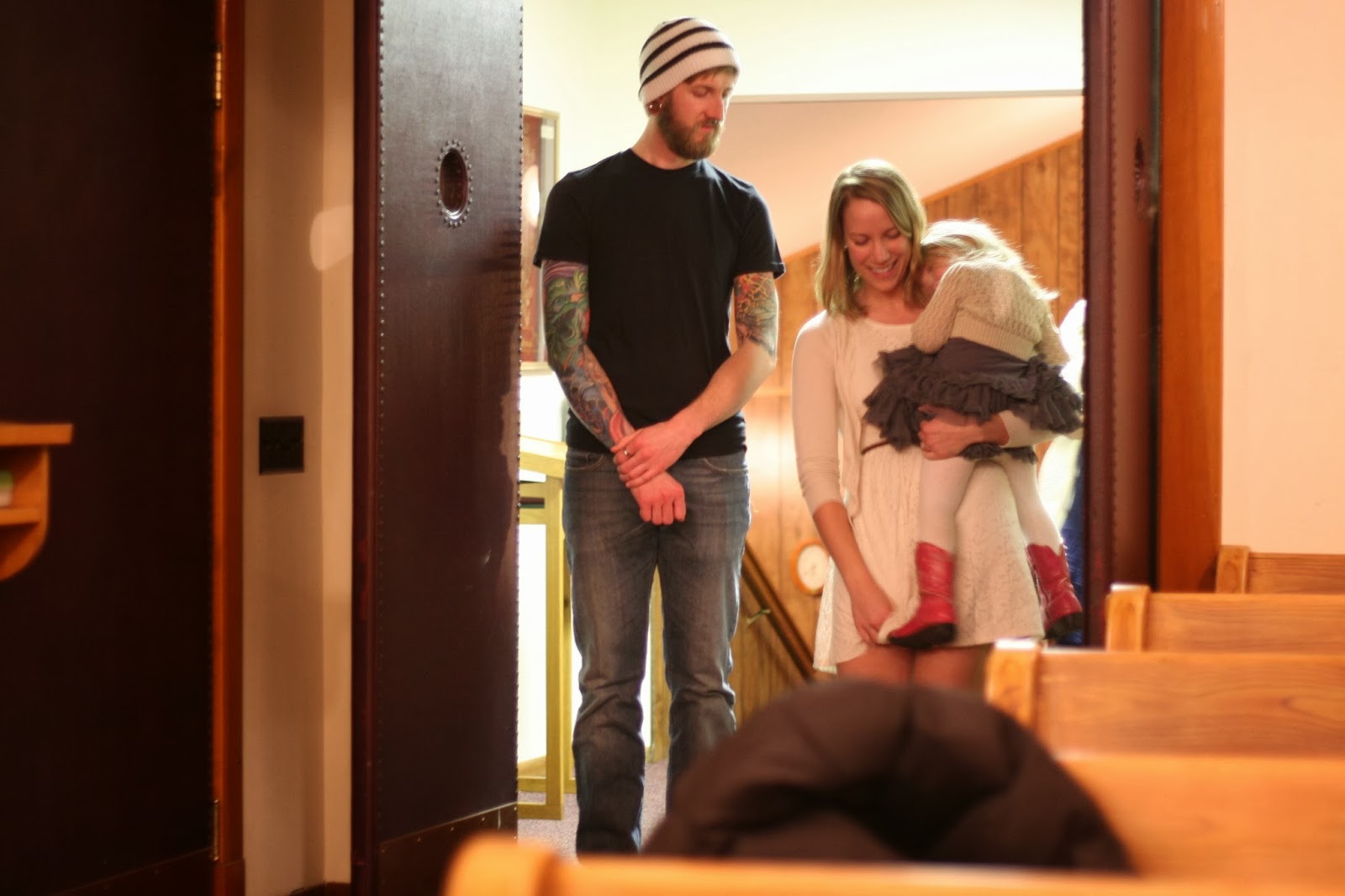 Just after my parents arrived from Phoenix, Solveig got to participate in a wedding as flower girl. She latched onto the bride so fiercely that they were barely separated all day. She was invited into the wedding party because she was the first newborn baby that the groom had ever held, and Solveig and Conrad (the groom) have always had a special relationship. That all changed when Solveig met his bride, Lisa. Ever since she had no more time for Conrad as Lisa is now her new best friend.