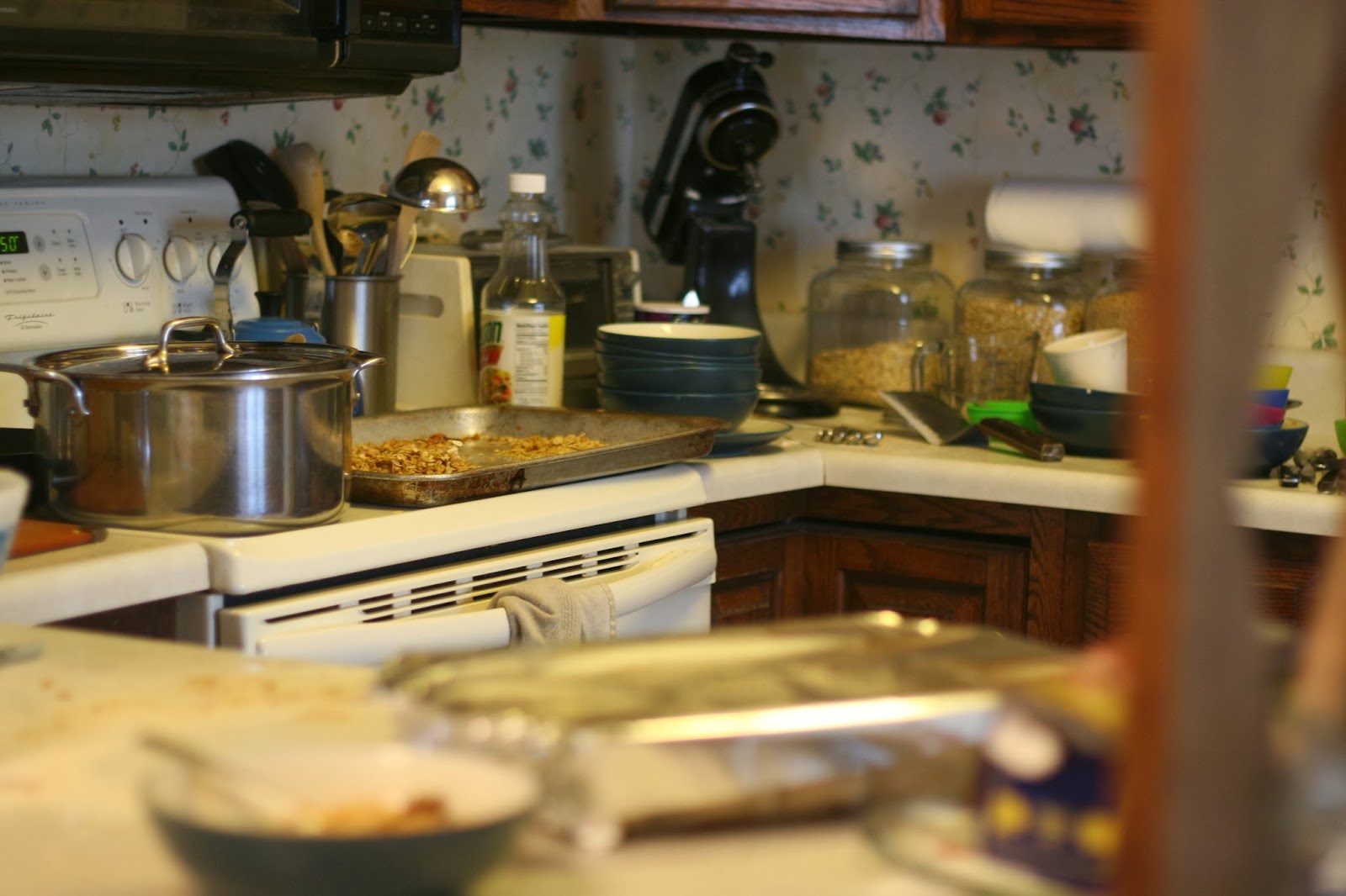 We’ve been doing a lot of baking around here, though according to my family, not nearly enough. We have a new toy at our house: a grinder for wheat/grains. We’ve been wanting to try fresh ground flour, soaked/sprouted flour. I think we’ll squeeze a 4H project out of it too. The kids and I have been researching different mills for a few months, and they finally convinced me to buy a manual one, not an electric, not only because it’s cheaper, but because they all want a turn turning the grinder.